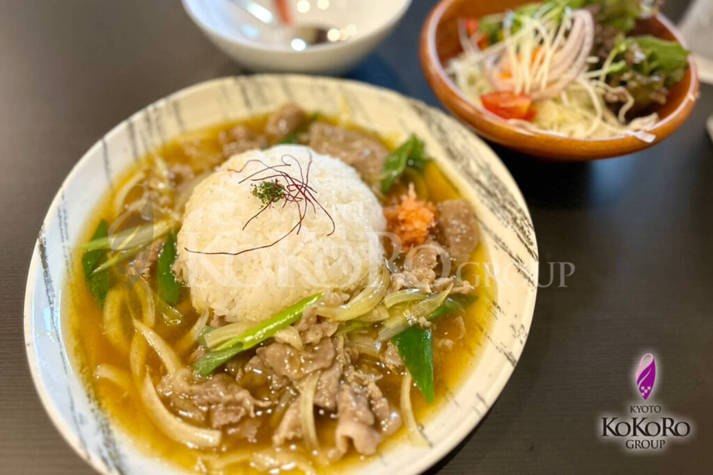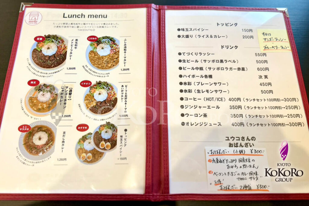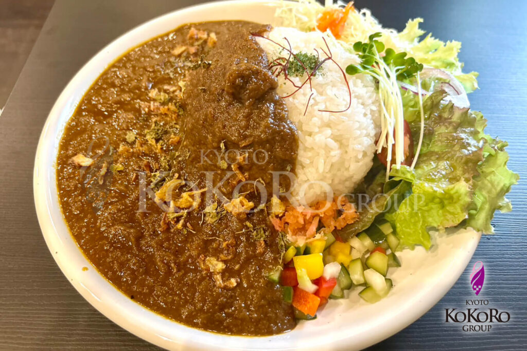 どれも美味しそうで悩んでしまいましたが、今回は家族で訪れたので娘も食べれそうなものをと思い、私は京だしカレーを選びました(ㆁωㆁ*)