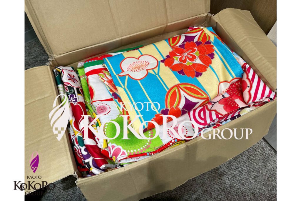 そうして『京都ココログループ』の各店から集まったお着物はダンボール箱13箱分、その数およそ250着あまりに及びます。
